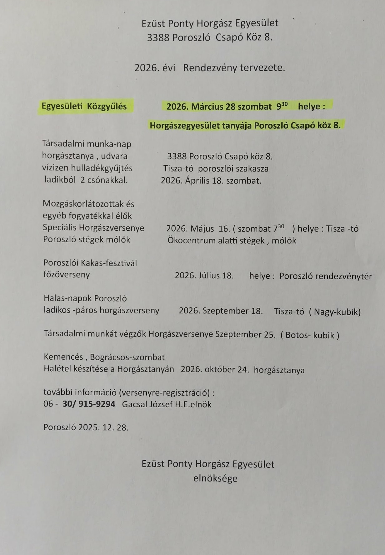 Gratulálok a helyezetteknek és minden résztvevőnek aki Poroszlóra látogatott és megismerte ezt a csodálatos környezetet. Az itt található lehetőséget használta ( kihasználta) a (Tisza - tó területén egyedülálló ) kerekesszékes horgászhelyek felfedezték ( 5 db biztonságos stég) melyek gépkocsival megközelíthetők ( 5 méterre ) 50 éves fűzfák ölelésében /árnyékában kulturált körülmények között tölthetik szabadidejüket pecázással.Gacsal József Ezüst Ponty H.E. elnök